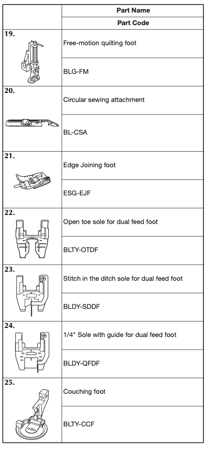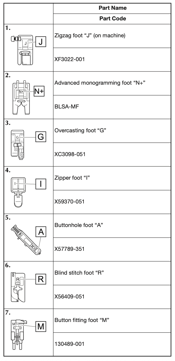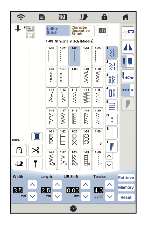 *just touch the stitch you want and the screen will show the foot needed plus the stitch choice.