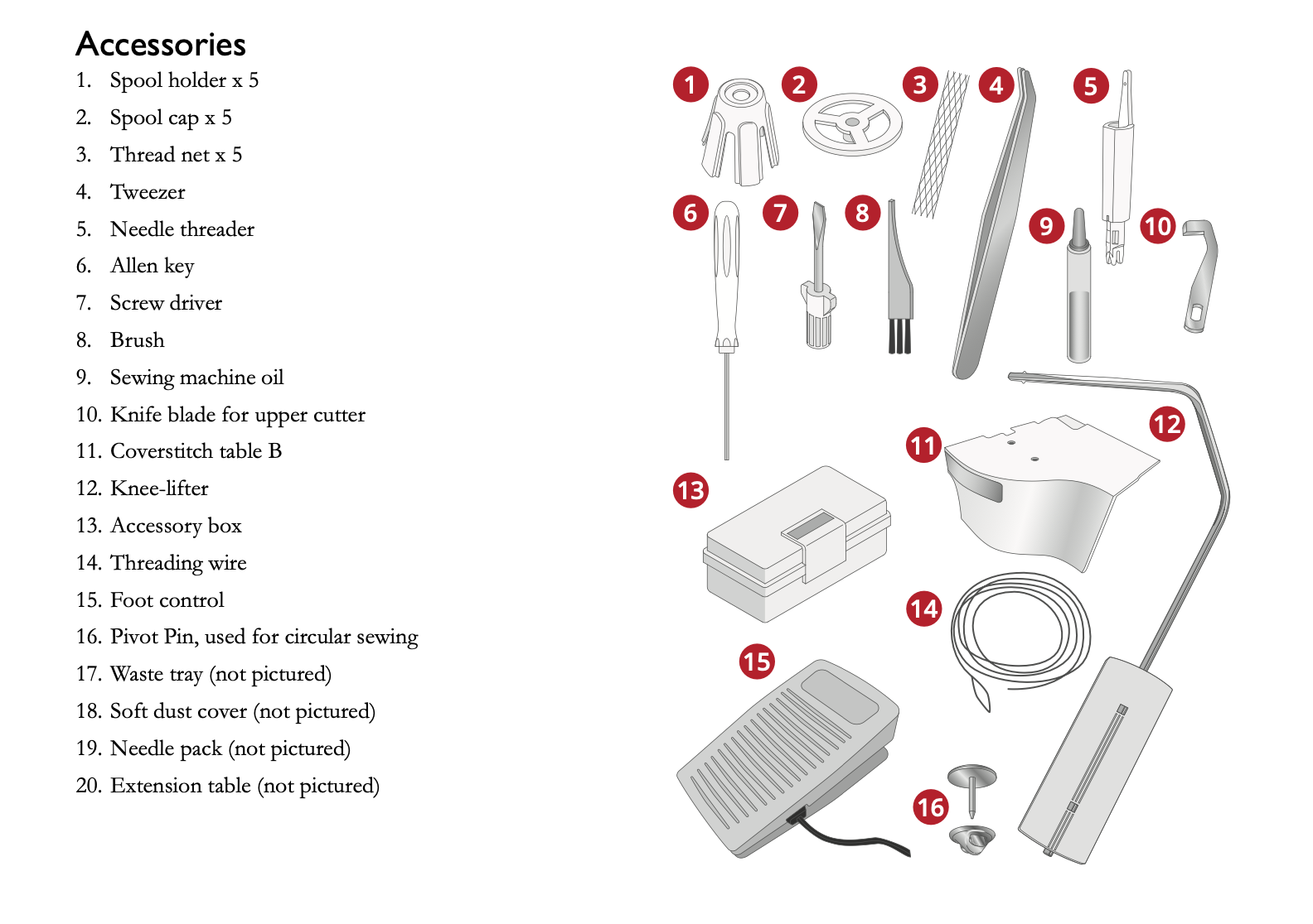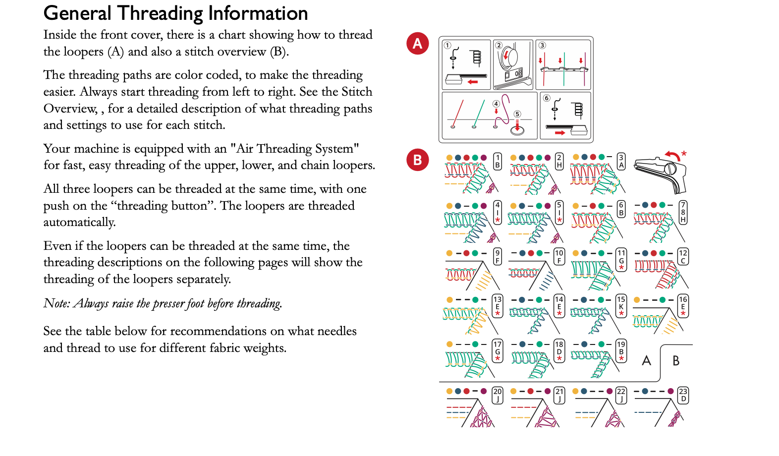 The 5/4/3/2 thread stitch capability provides 23 different stitch options for a wide range of sewing techniques.
