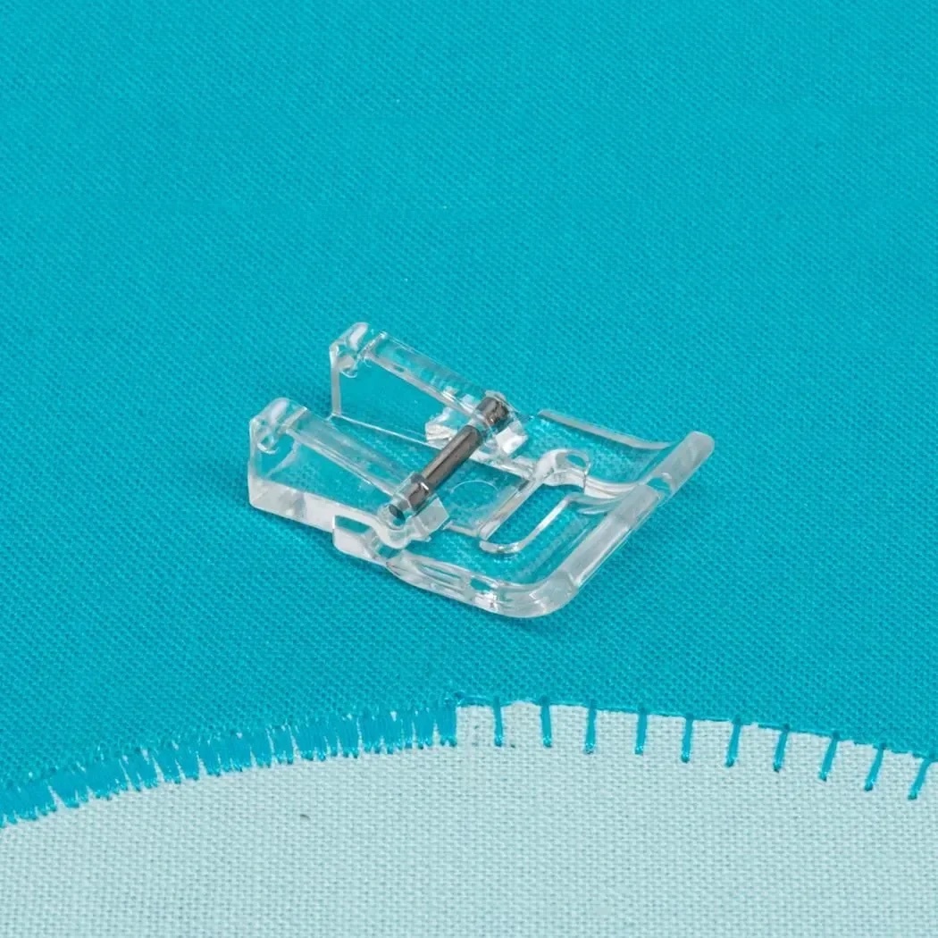 Managing curves and corners is easy when using the clear applique foot. With a shorter toe, better visibility, and an alignment marking on the foot, aligning with the fabric edge while stitching around an image is seamless.