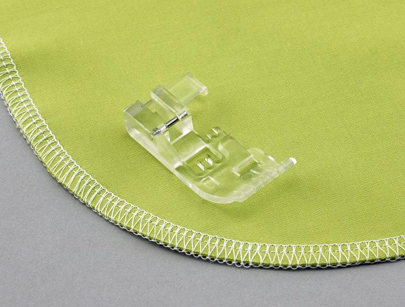 The clear curve foot is short and has a flat sole, making it a good choice for stitching curves and sewing over cross seams. Use this foot for better visibility when attaching ribbon and lace or guiding lightweight decorative stitching around curves. Good for sewing around cuffs, necklines and children's wear using the cover stitches.