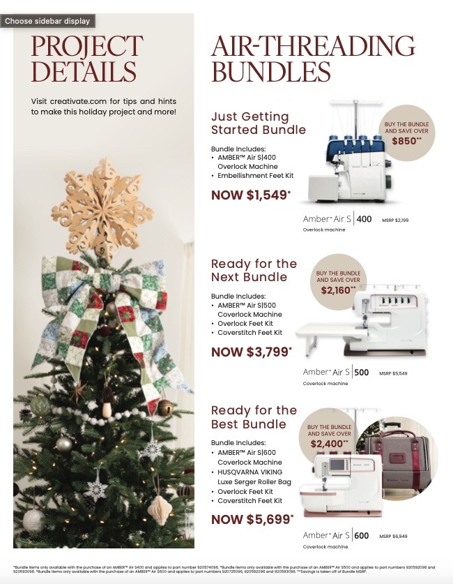 Quick view Compare Add to Cart The item has been added Husqvarna VIKING AMBER AIR s/400 MSRP: Was: $2,199.00 Now: $1,549.00