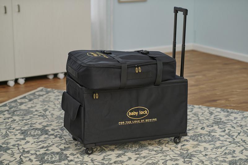 Safely take your Baby lock Machine to class and on the road in this durable trolley bag. Adjust the handle to a comfortable height and pull the easy-rolling trolley wherever you go. Made with reinforced padding and 600 Denier Polyester fabric. Not intended for air travel.