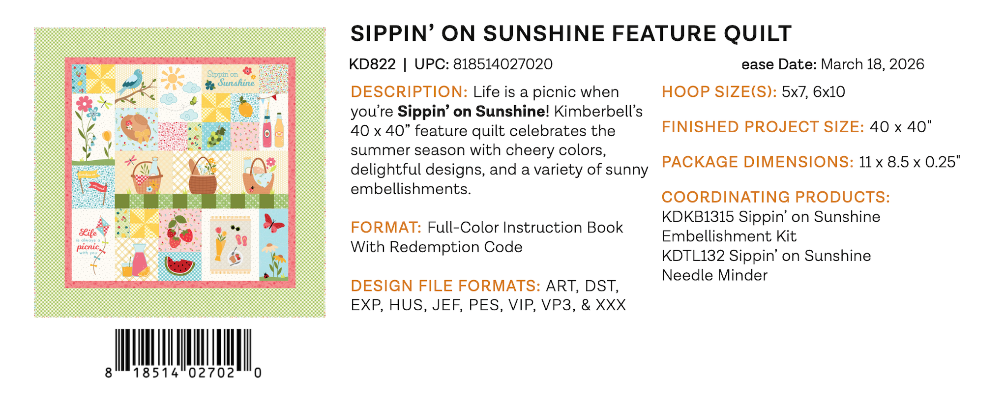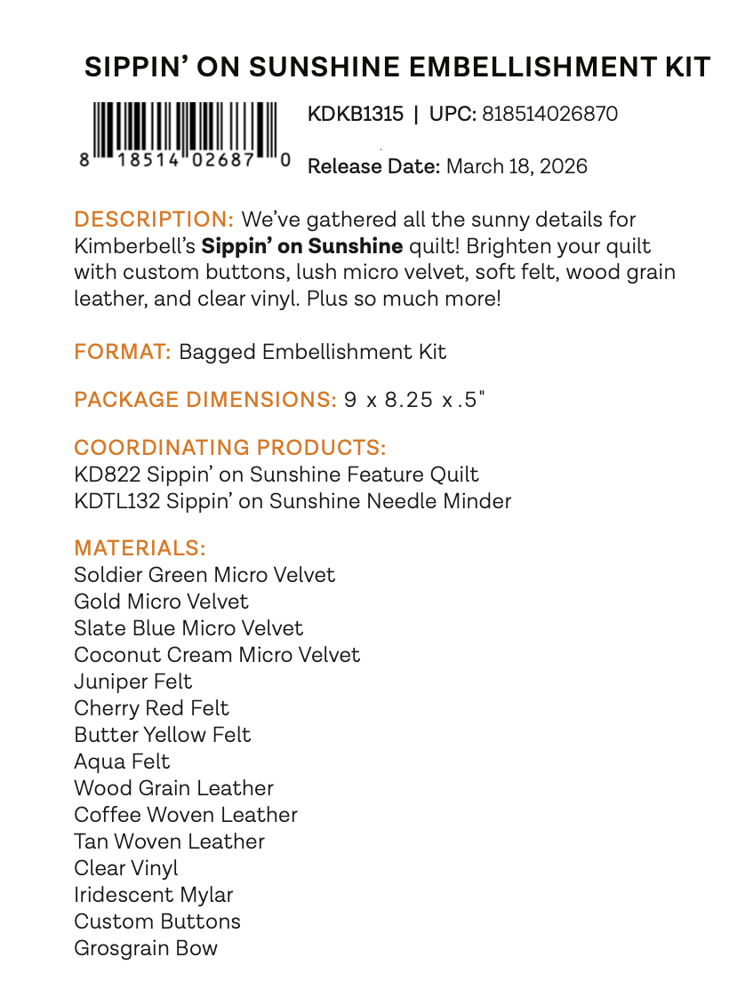 Make the Kimberbell® Sippin’ on Sunshine Quilt featuring the Sippin’ on Sunshine fabric collection.