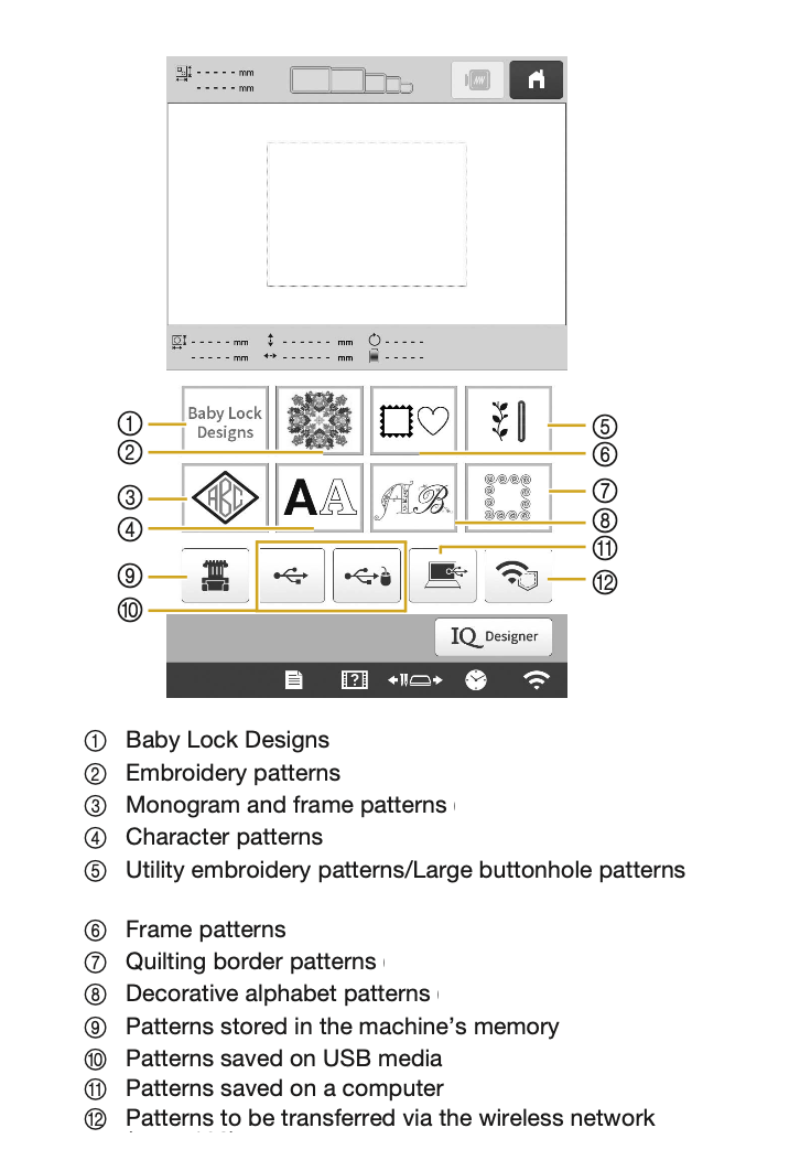 IQ INTUITION MONITORING APPKeep track of your project's progress with this convenient feature that alerts your phone when the bobbin needs to be changed, if a thread breaks, if a thread needs to be changed and when stitching is done. (Free smartphone app for download is required.) |